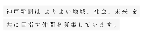 神戸新聞社は「もっといっしょに」を合言葉に、読者・兵庫県民の皆さまと地域の未来づくりに取り組んでいます。